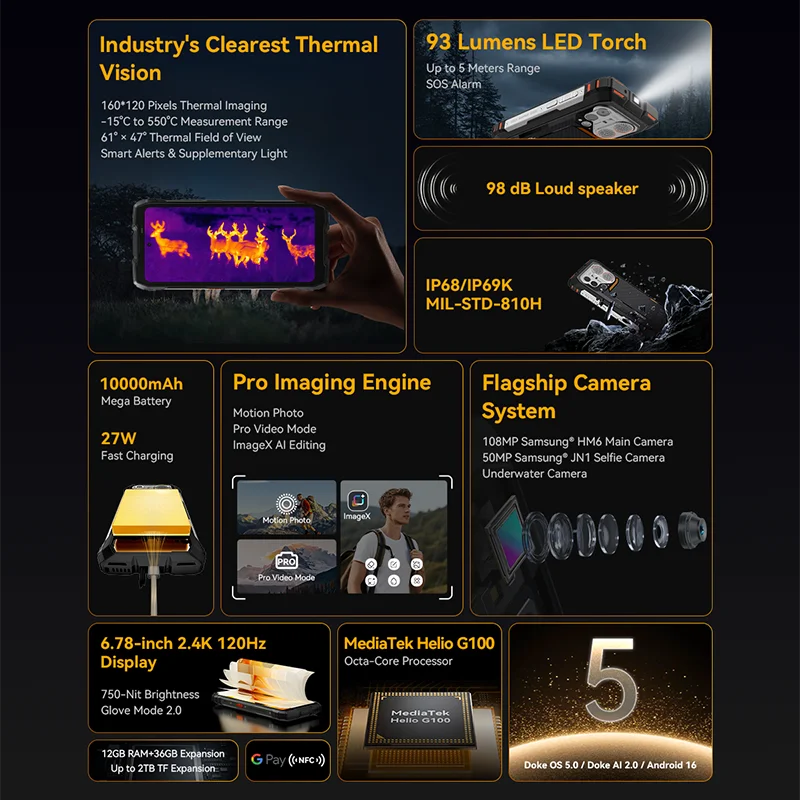 ♡Быстрый просмотр【Мировая премьера】Защищенный смартфон Blackview Fort 5 с 6,78-дюймовым дисплеем 2.4K 120 Гц, 108-мегапиксельной камерой и сверхлегким корпусом, защищенный от влаги и пыли по стандартам IP68 и IP69K.20582.21 RUBГорячее★★★★★★4.6