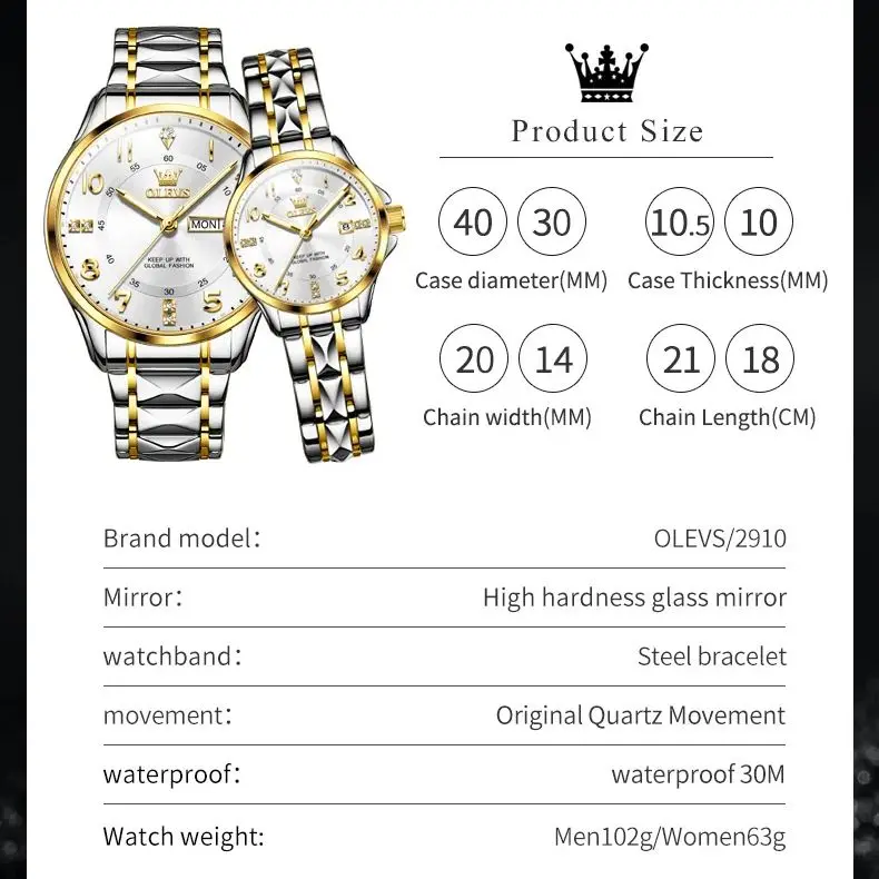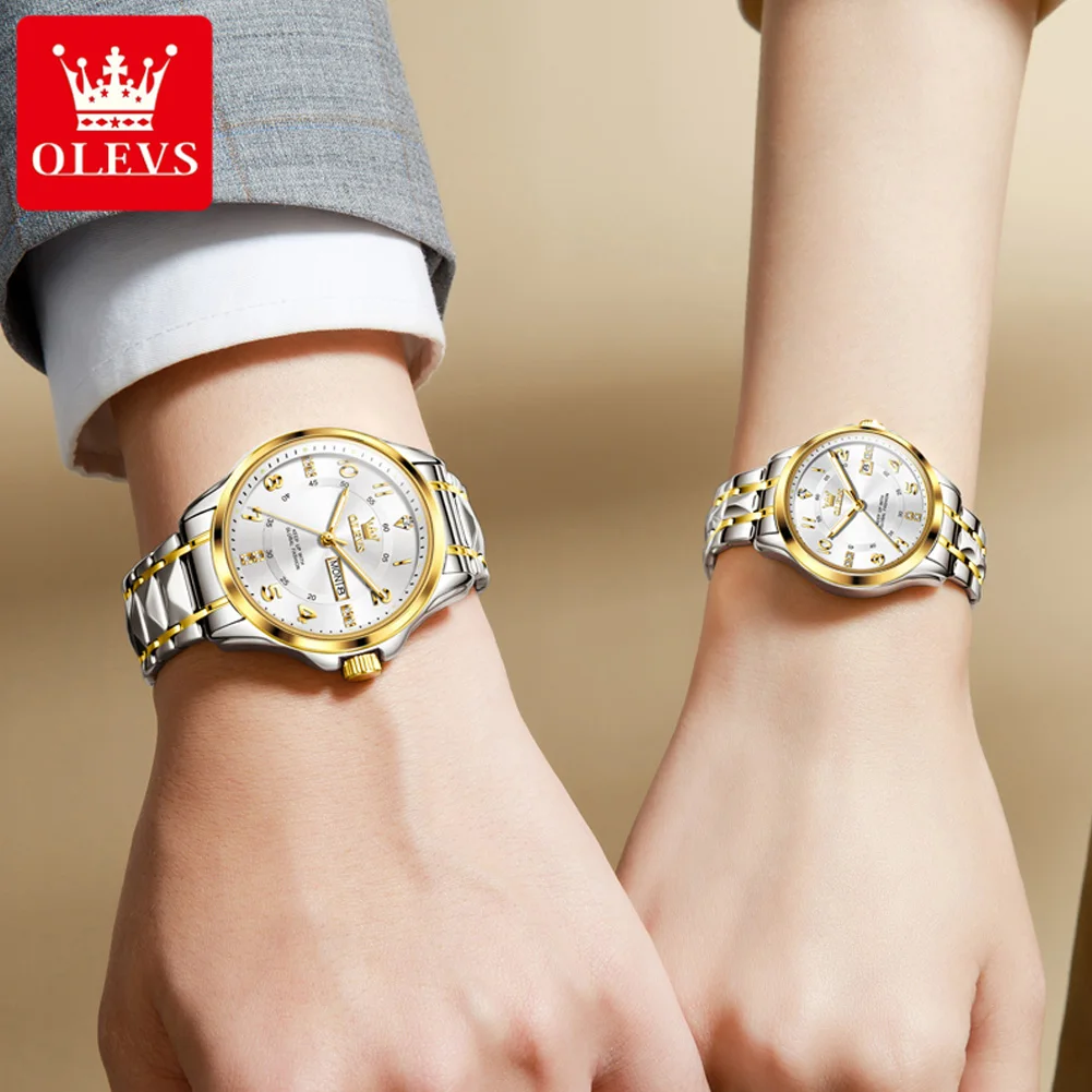 ♡Быстрый просмотрOLEVS 5593 Часы для пар Модные деловые водонепроницаемые часы из нержавеющей стали Элитный бренд Классические часы с датой и неделей Мужские и женские часы2014.67 RUBГорячее★★★★★5.0