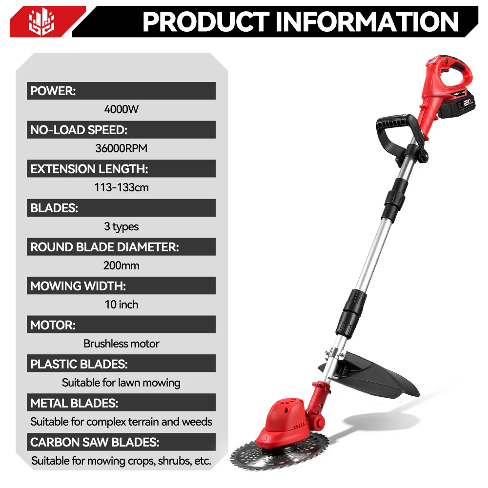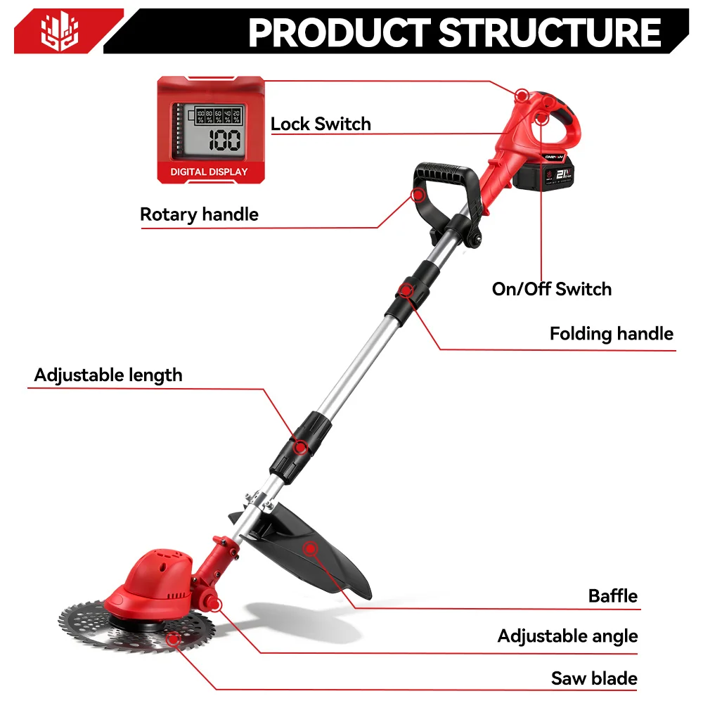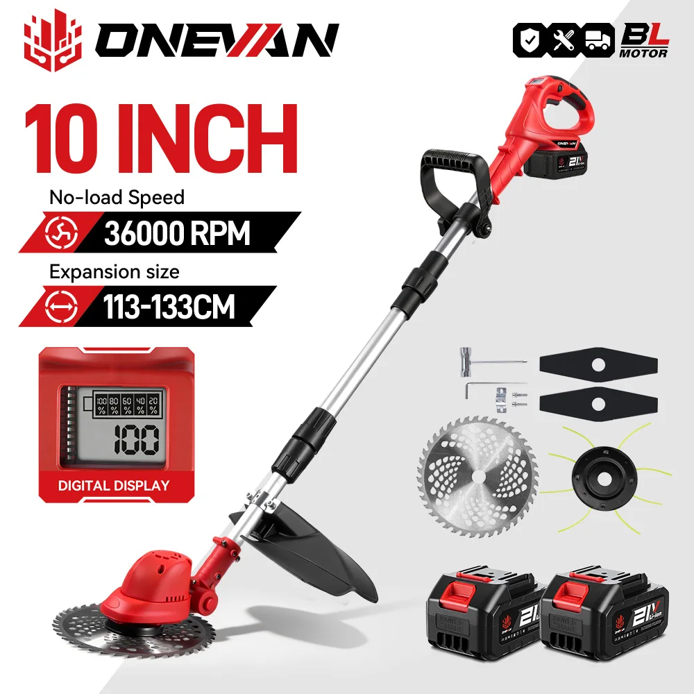 ONEVAN 10-дюймовая бесщеточная электрическая газонокосилка 36000 об/мин, аккумуляторный триммер для травы, садовый электроинструмент для Makita, 18 В, аккумуляторный штифт - TopDealBox