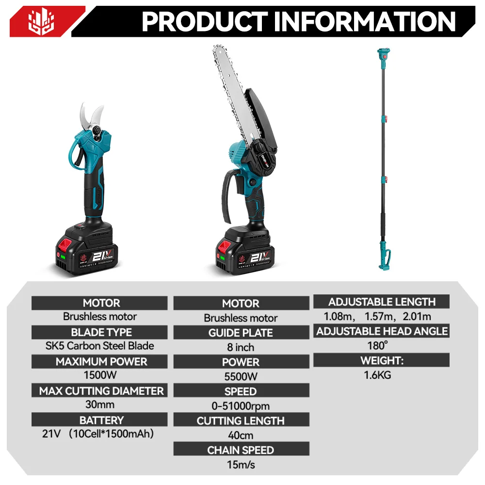 ♡Быстрый просмотрБеспроводные телескопические электрические ножницы-пила ONEVAN 3500 Вт, 4-в-1, для обрезки высоких веток, совместимые с аккумуляторами 21В/18В8311.10 RUBГорячее★★★★★★4.5
