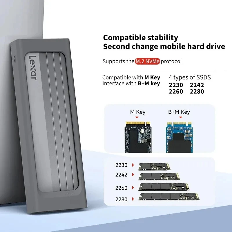 ♡Быстрый просмотрОригинальный корпус Lexar E300 M.2 SSD USB 3.2 Gen 2 Type C 10 Гбит/с для мобильного жесткого диска для NVMe M.2 SSD M Key/B+M Key969.26 RUBГорячее★★★★★★4.8
