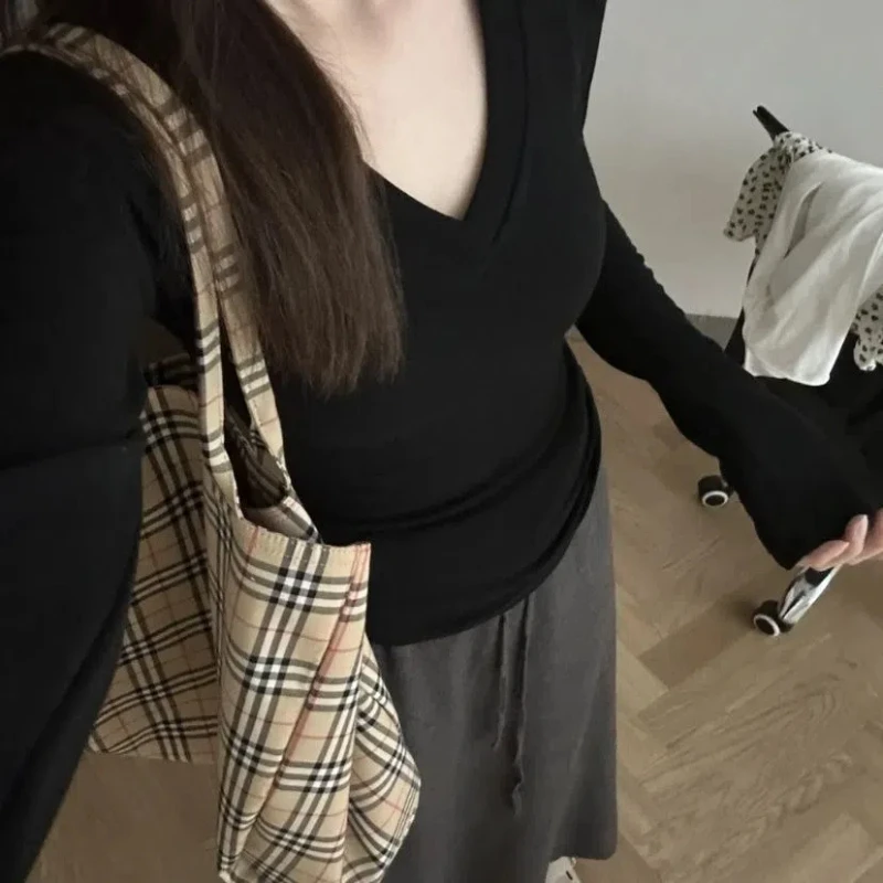 ♡Быстрый просмотрЖенские повседневные футболки с длинным рукавом, весенне-осенние однотонные облегающие пуловеры, футболки, женские уличные базовые футболки, топы, повседневные448.07 RUBГорячее★★★★★★4.6