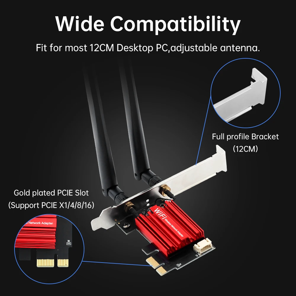 ♡Быстрый просмотрWiFi 6 AX900 PCIE Wi-Fi адаптер BT5.4 802.11AX двухдиапазонная беспроводная сетевая карта 2,4 ГГц/5 ГГц для настольных ПК Win 10/111004.53 RUBГорячее★★★★★4.5