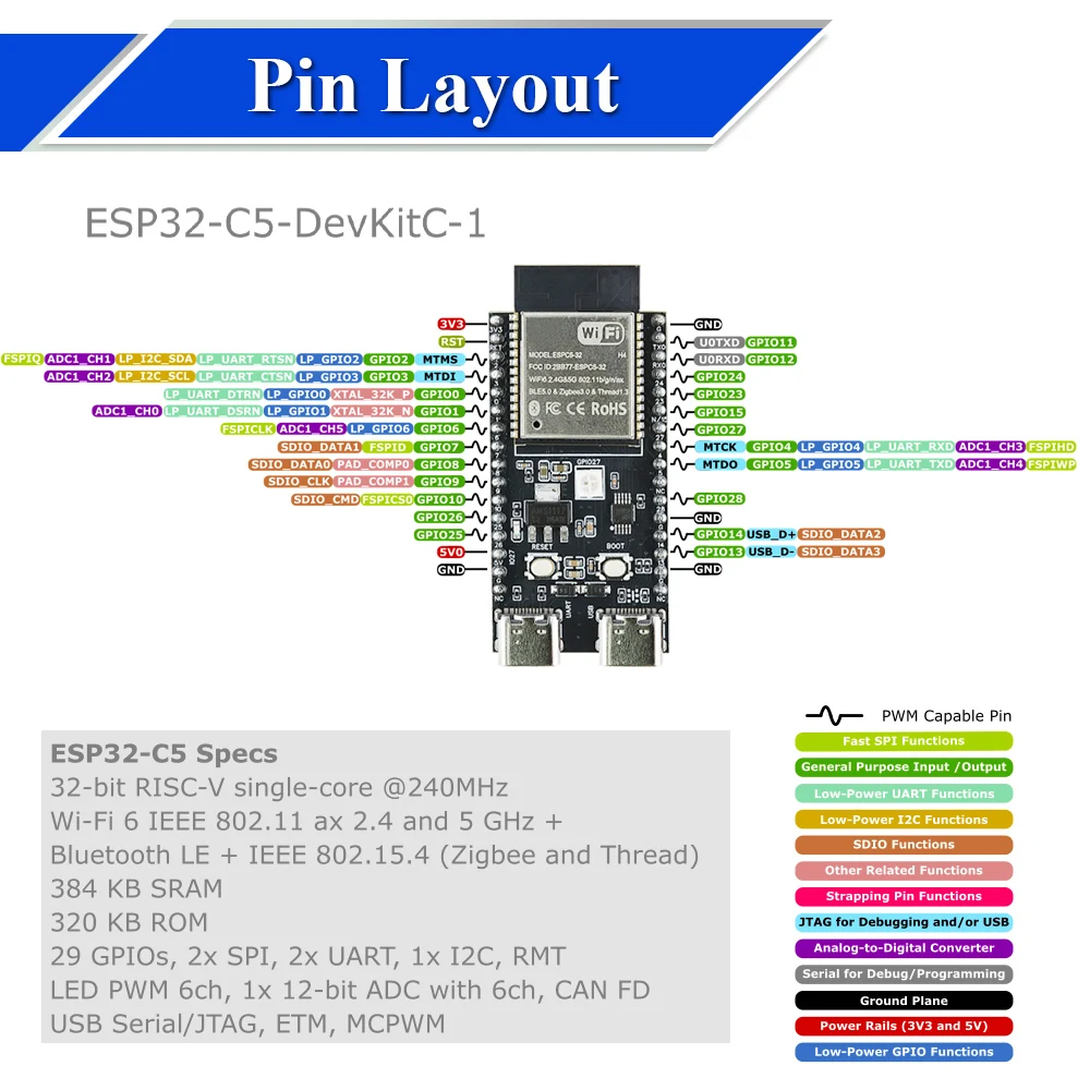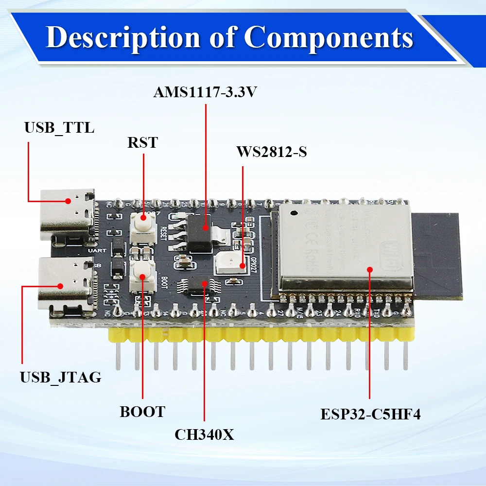 ♡Быстрый просмотрПлата разработки ESP32 CH340C с Wi-Fi и Bluetooth, двухъядерная, сверхнизкое энергопотребление, ESP32-DevKitC-32, плата расширения ESP-WROOM-3262.89 RUBГорячее★★★★★★4.7