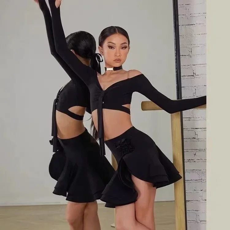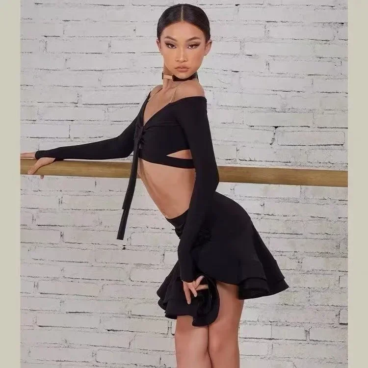 ♡Быстрый просмотрЧерная одежда для латинских танцев, комбинезон для девочек, трико с длинными рукавами, топы для латинских танцев, одежда для бальных танцев, боди для ча-ча, детское боди947.63 RUBГорячее★★★★★★4.8