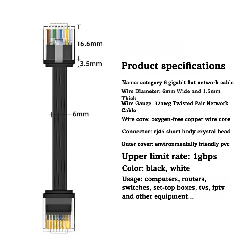 Плоский Ethernet-кабель Cat 6,1 м/0,15 м/0,2 м/0,3 м0,5 м UTP 1000 м, сеть для ноутбука, маршрутизатора, ПК, маршрутизатора PS5 PC 4 3 Xbox Modem - TopDealBox