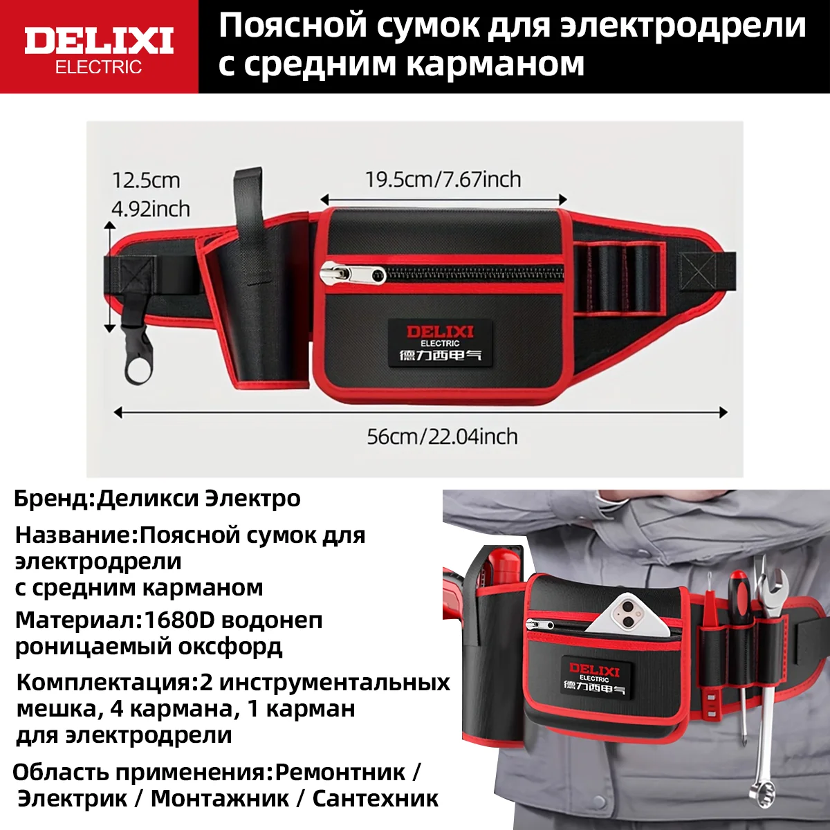 ♡Быстрый просмотрDELIXI Сумка Для Инструментов Из Ткани Оксфорд Для Электрика Портативное Решение Для Хранения Для Сантехников Электрики Домаш...342.12 RUBГорячее★★★★★★4.8