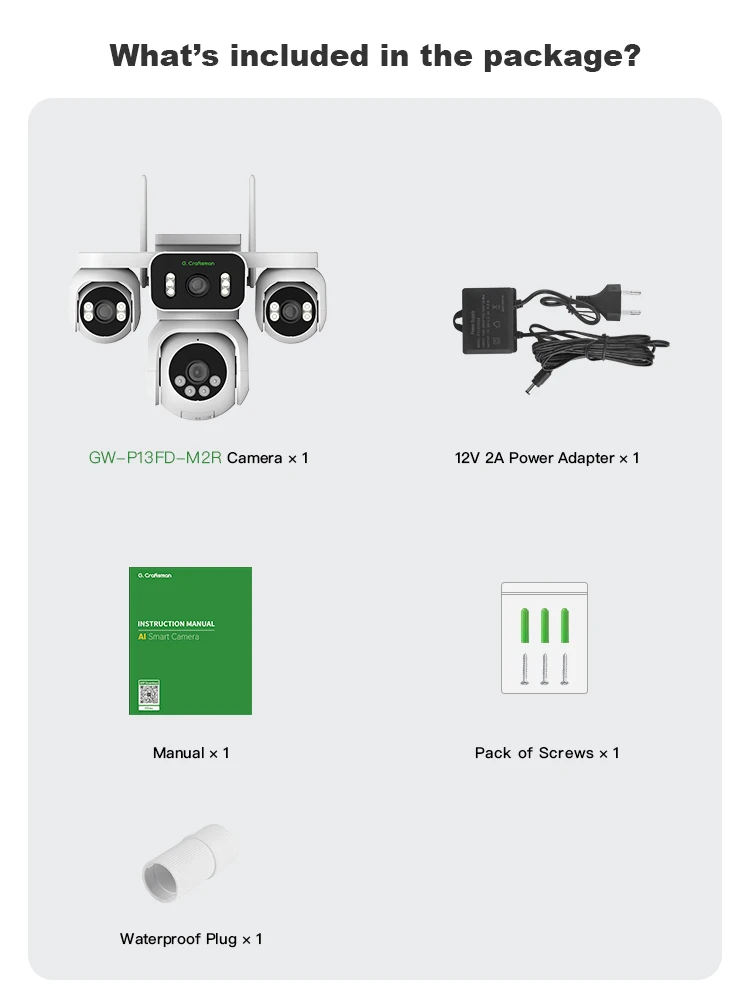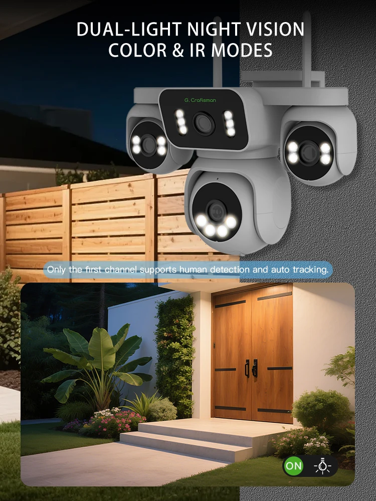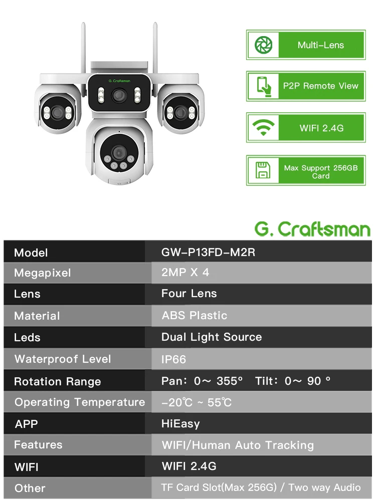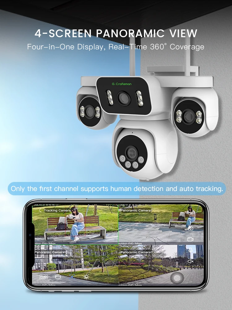 R-R, Беспроводная система безопасности для улицы, 355 ° PTZ-камера с 4 объективами (4x2MP), HD-видео, ночное видение, Wi-Fi, панорамный домашний мониторинг, GW-P13FD-M2R - TopDealBox