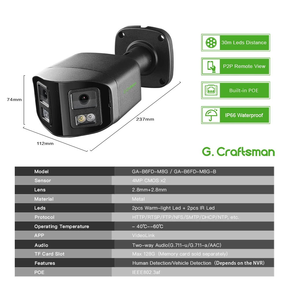 ♡Быстрый просмотр Полноцветная камера G.Craftsman A8 8 МП с поддержкой POE | Объектив F1.0 Датчик 1/1,8 дюйма | 24/7 Звездный свет | H.265+ | XMEYE/ONVIF 5823.42 RUBГорячее★★★★★5.0