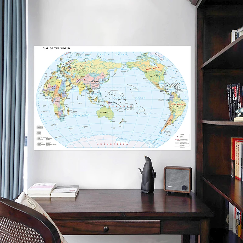 Настенный декор: Карта мира с политической разметкой и флагами, серия «Английская карта», холст, постеры, картины, товары для путешествий - TopDealBox