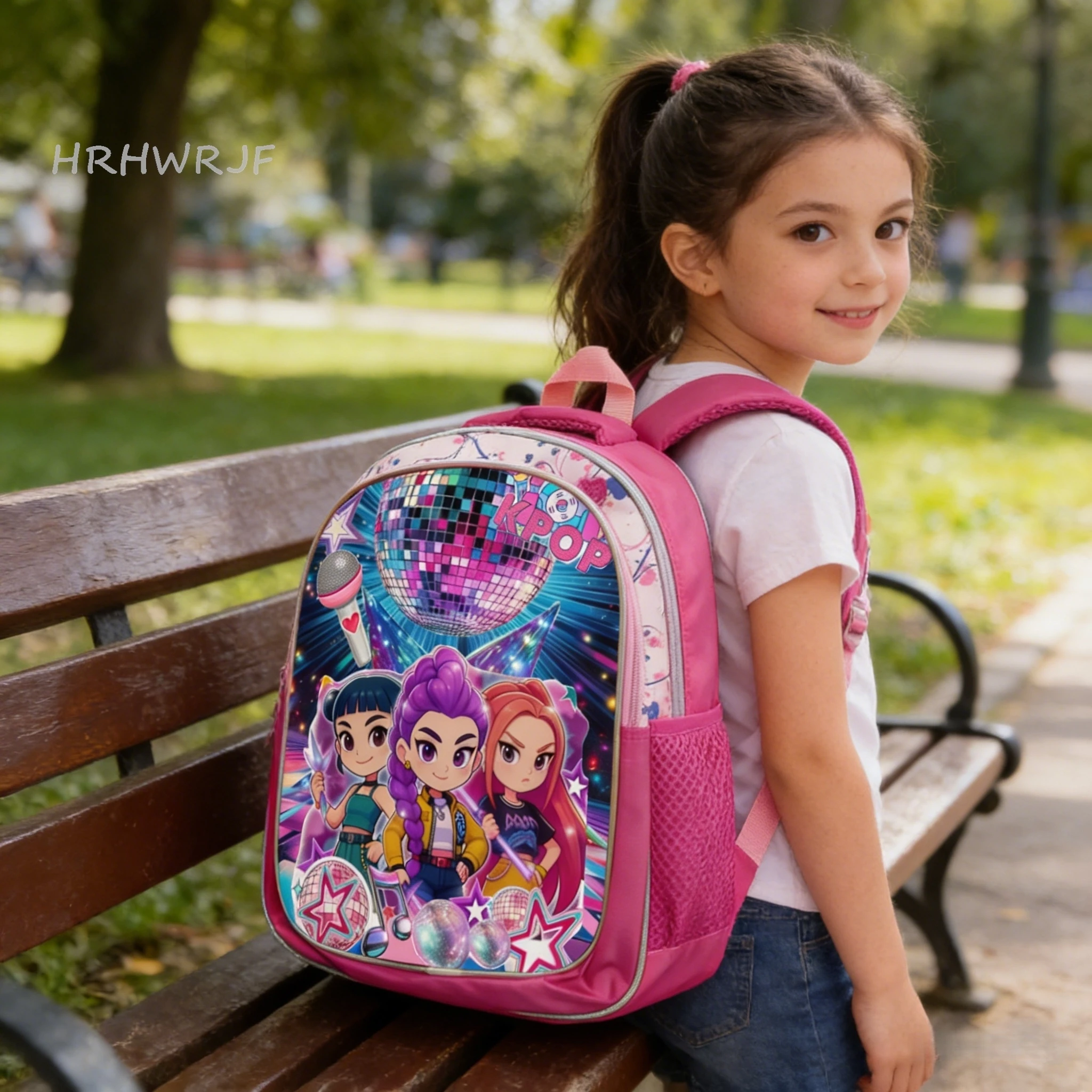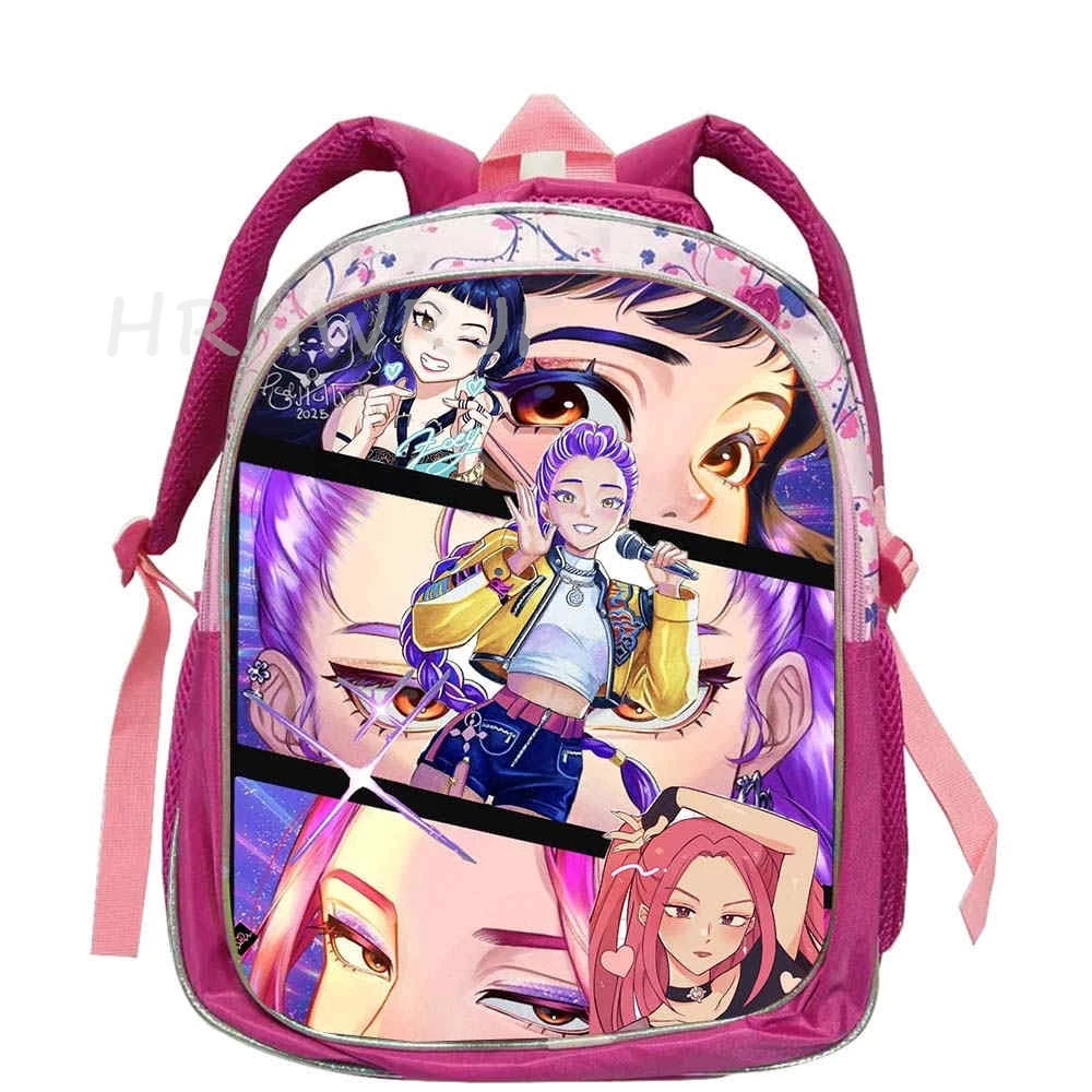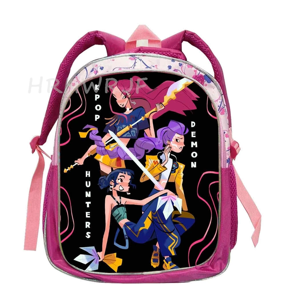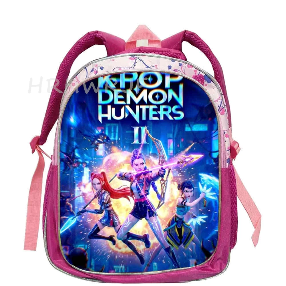 ♡Быстрый просмотрРюкзак KPop Demon Hunters розовый 12 дюймов Rumi Mira Zoey HUNTR/X Saja для мальчиков и девочек, школьная сумка для детского сада, Mochila1185.16 RUBГорячее
