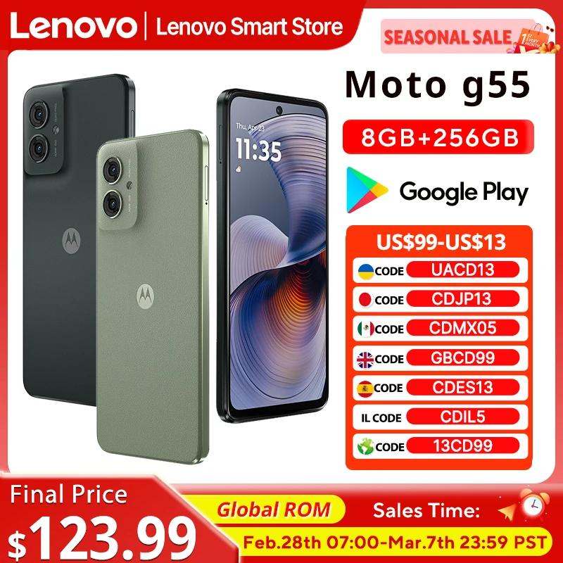 ♡Быстрый просмотрСмартфон Motorola MOTO G55, глобальный ПЗУ, оригинальный 6,5-дюймовый дисплей, 256 ГБ, 120 Гц, MediaTek Dimensity 7025, процессор, 50 МП, мобильный телефон20119.17 RUBГорячее★★★★★★5.0