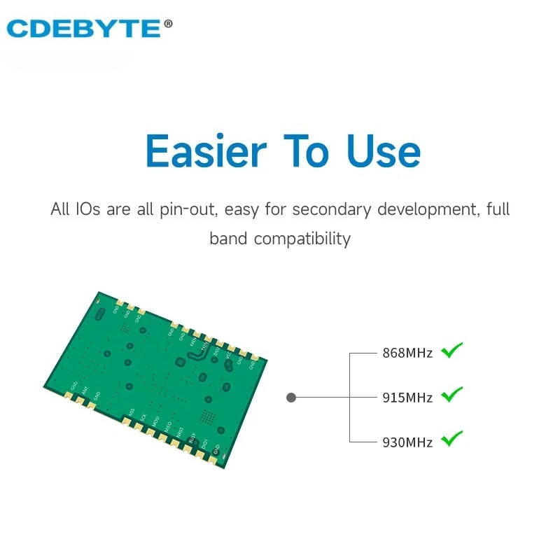 ♡Быстрый просмотрБеспроводной модуль SX1262 LoRa с расширенным спектром 868/915 МГц, встроенная серия PA + LNA + SWA CDEBYTE E22P, 30 дБм, 12 км, защита от электростатического разряда SPI770.97 RUBГорячее★★★★★★5.0