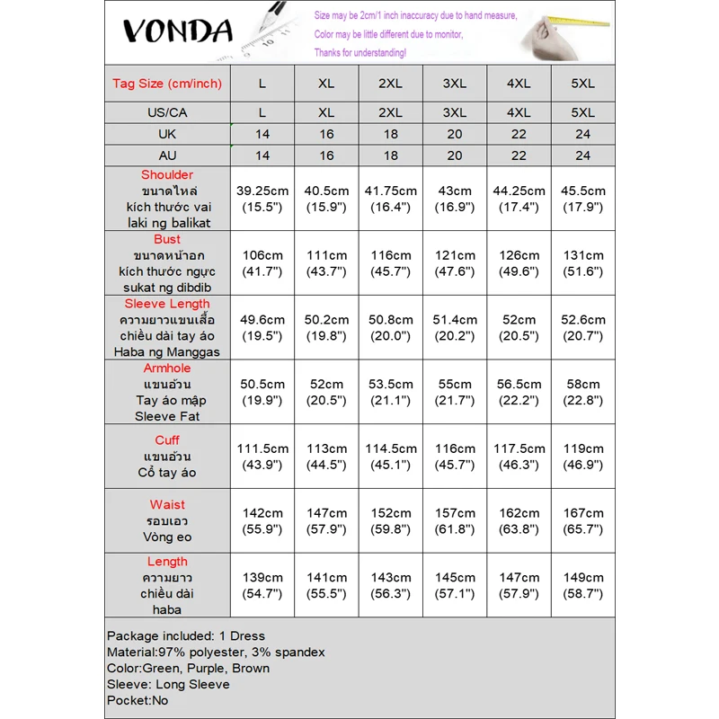 ♡Быстрый просмотрПлюс размер 5XL VONDA Элегантное женское кружевное лоскутное атласное платье макси Осеннее длинное платье с длинным рукавом и воротником-стойкой Длинные платья Повседневный вечерний халат1294.60 RUBГорячее★★★★★★4.8