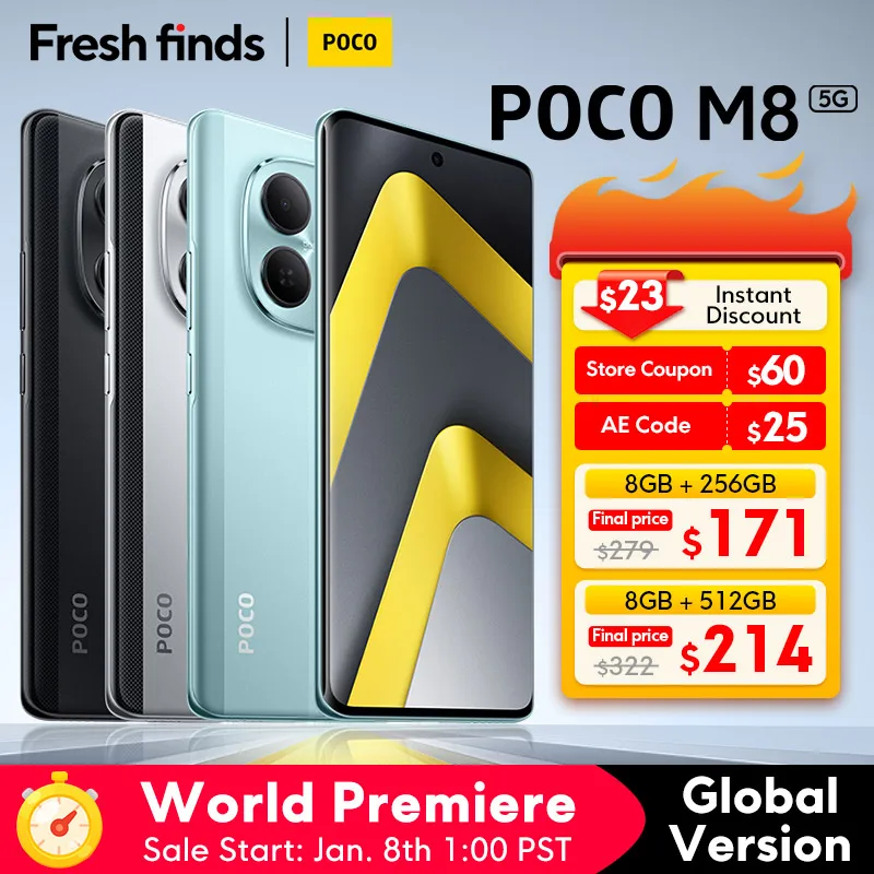 ♡Быстрый просмотр【Мировая премьера】Смартфон POCO M8 5G, глобальная версия, Snapdragon ® 6-е поколение, 3-я камера 50 Мп, 6,77-дюймовый AMOLED-дисплей 120 Гц, 5520 мАч, 45 Вт, NFC22183.87 RUBГорячее★★★★★★4.9