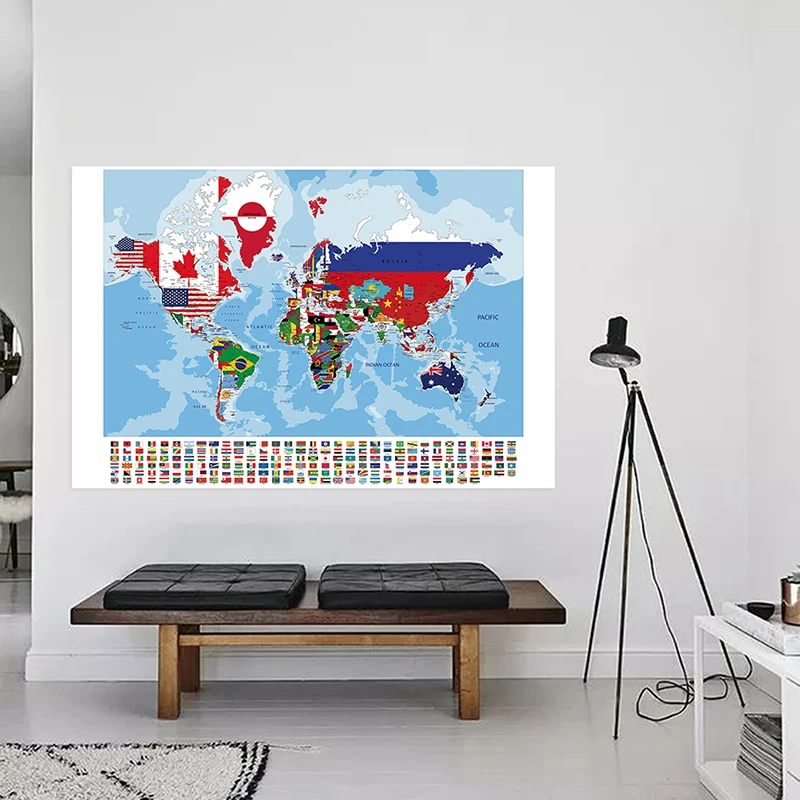 Главная > Канцтовары для офиса и дома > Карты и атласы Настенные постеры: Карта мира с национальными флагами, ретро-карта, культурные и туристические принадлежности, декоративные изображения для дома Информация о доставке