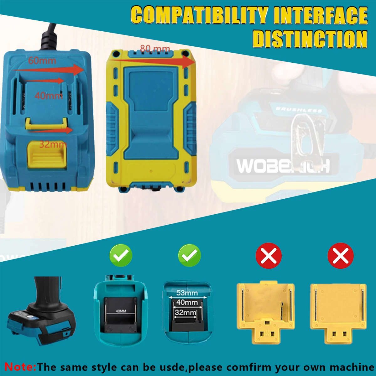 WOBERICH 18 В 20 В 21 В 40 А/55 А адаптер питания постоянного тока, совместимый с интерфейсом электроинструментов Makita 18 В для электроинструментов - TopDealBox