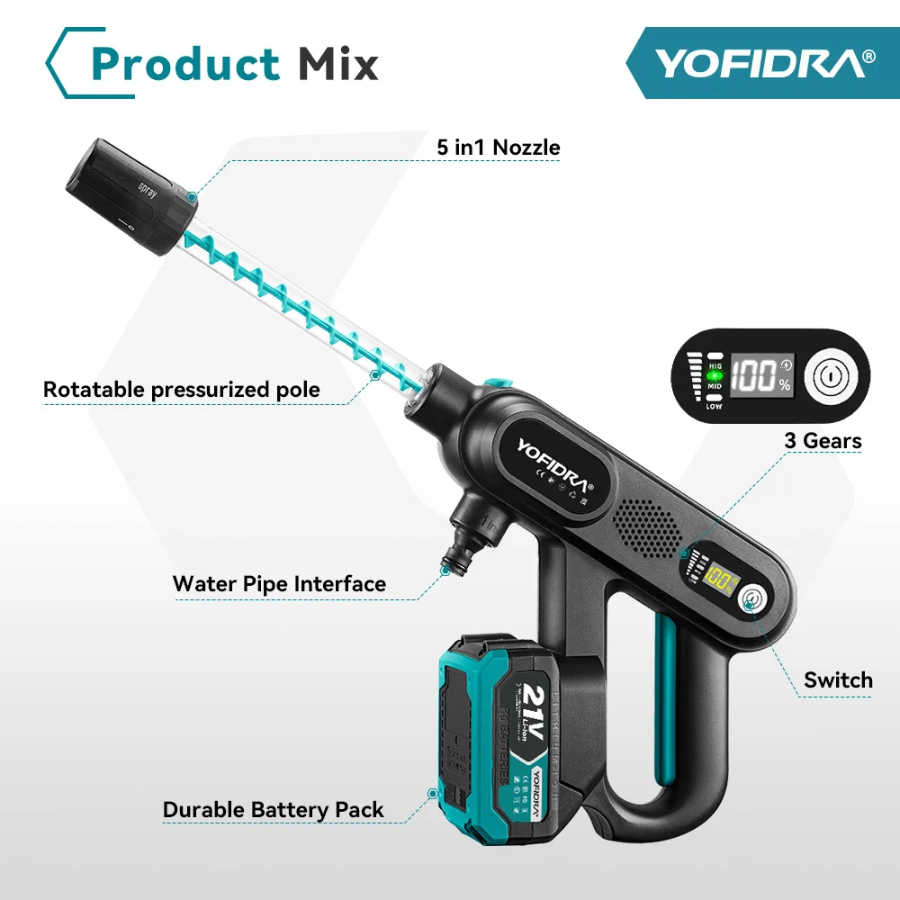 ♡Быстрый просмотрYOFIDRA 200 бар, бесщеточный пистолет для мойки автомобилей высокого давления, водяной пистолет 6 в 1, пистолет-распылитель для мойки сада, подходит для аккумуляторного штифта Makita 18 В4059.03 RUBГорячее★★★★★★4.8