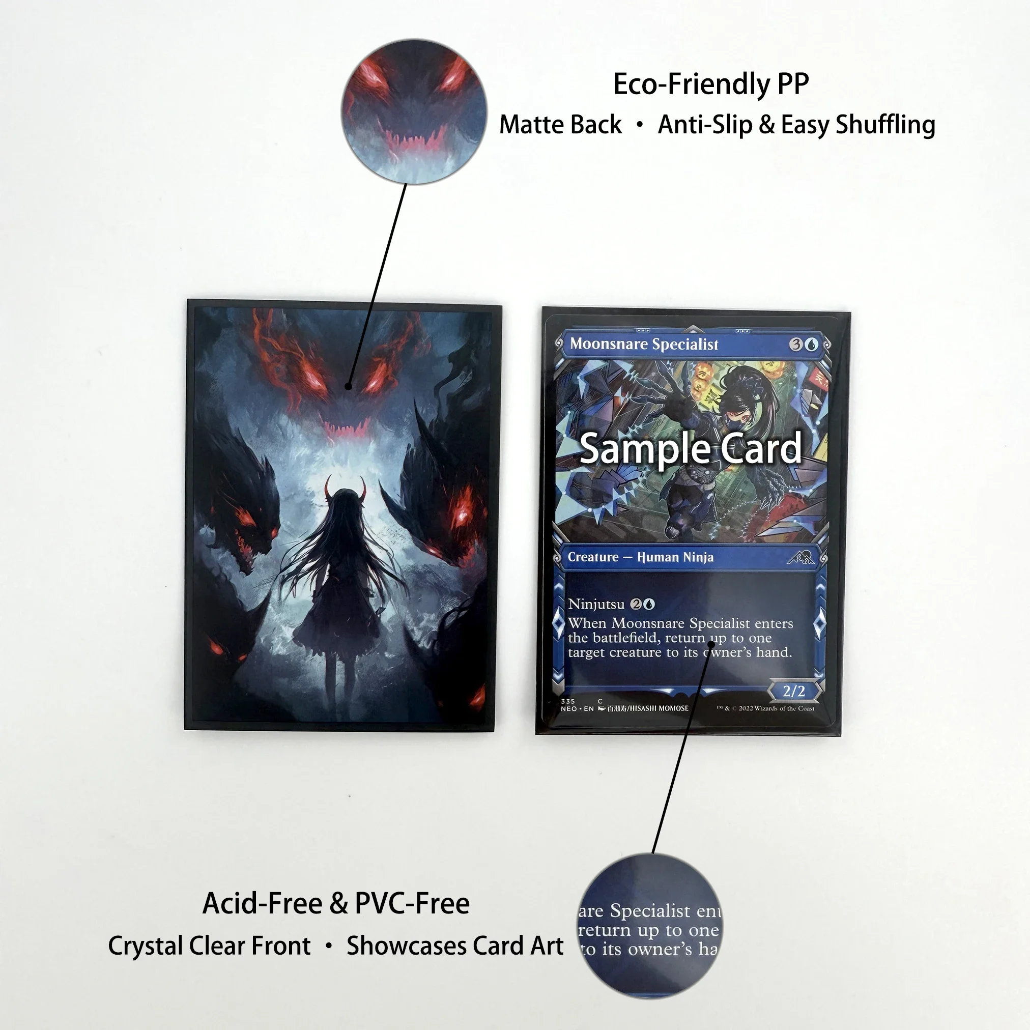 ♡Быстрый просмотрЗащитные пакеты для карт MTG, 100 шт., матовая задняя сторона, противоскользящие, для легкого перемешивания, 2,6 x 3,6 дюйма, подходят для TCG, OCG, CCG, PTCG (Demonic Giant Eye)1009.30 RUBГорячее★★★★★4.3