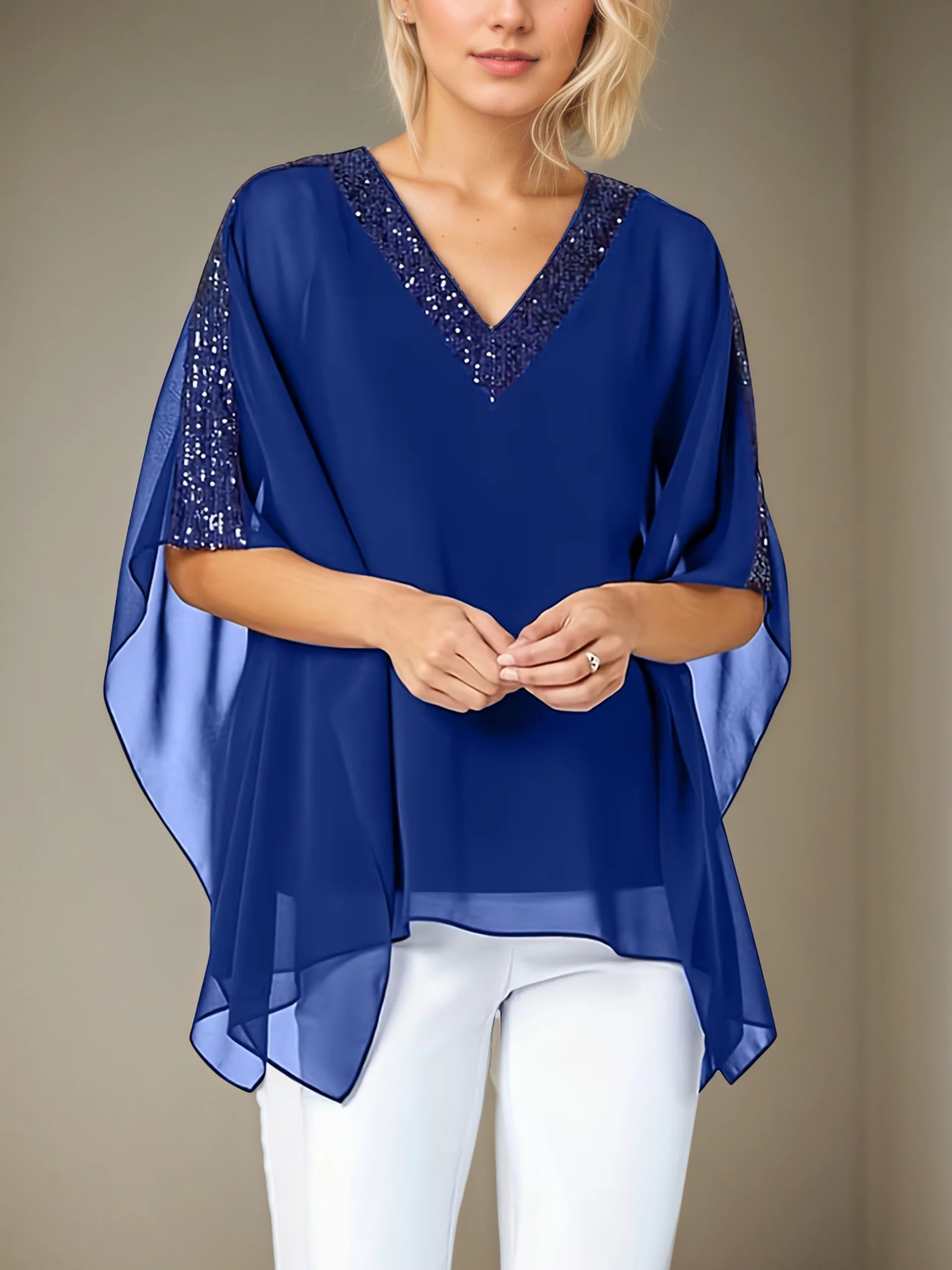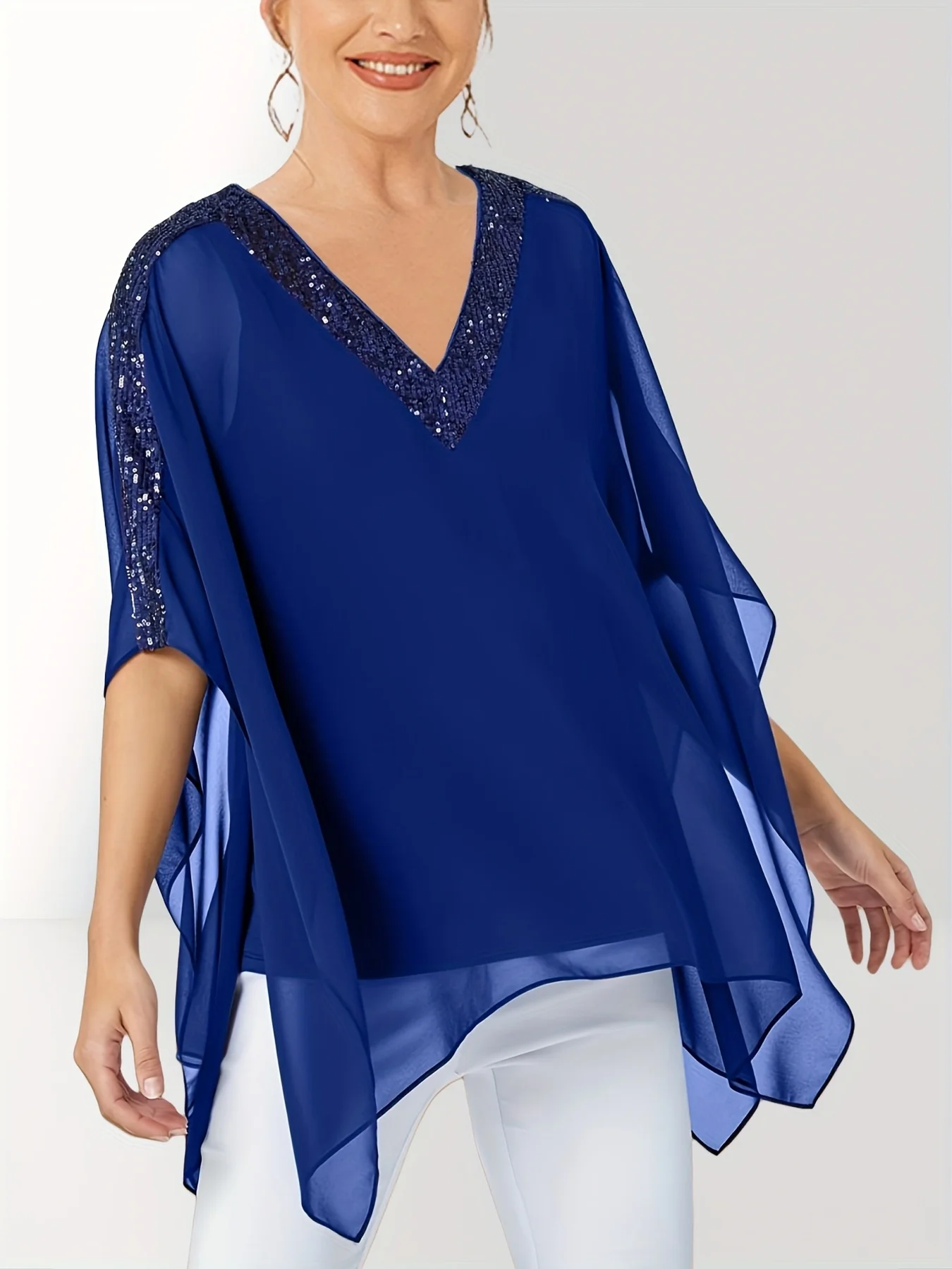 ♡Быстрый просмотрЖенская блузка больших размеров, пуловер с v-образным вырезом и рукавами «летучая мышь», блестящие многослойные рубашки, блузка, женская одежда, повседневный летний топ830.05 RUBГорячее★★★★★5.0