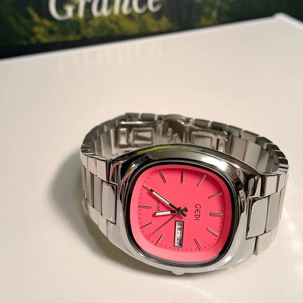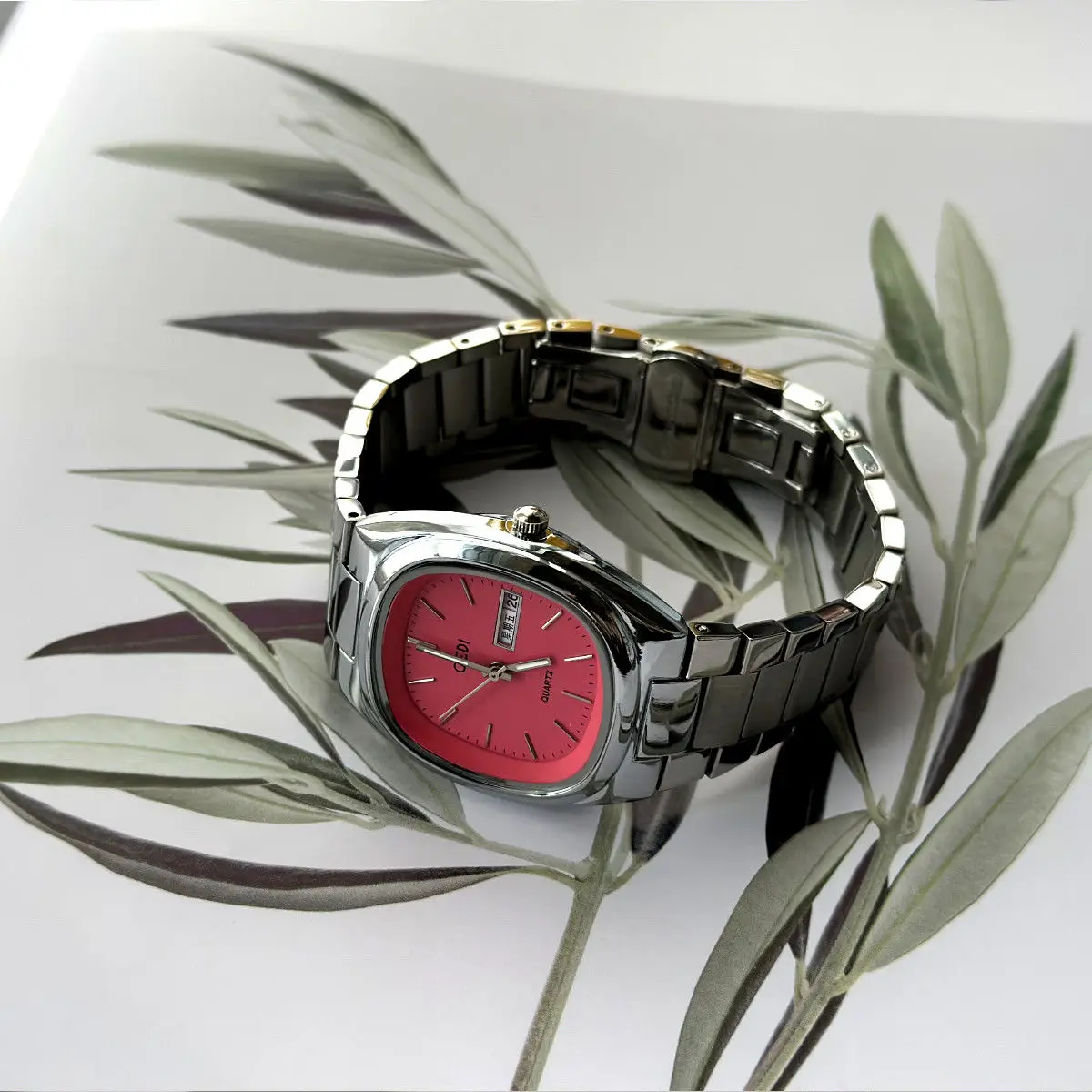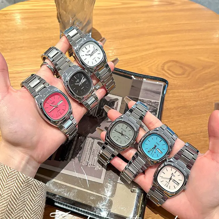 ♡Быстрый просмотрКвадратные допаминовые модные повседневные мужские часы с цветным тиснением в виде листьев, водонепроницаемые часы со стальным ремешком1346.99 RUBГорячее