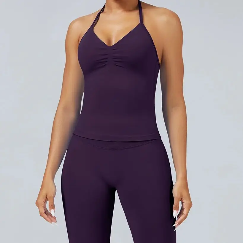 ♡Быстрый просмотрДлинный топ с v-образным вырезом и бретелями, женская бесшовная майка для йоги, спортивная одежда с рюшами и открытой спиной, рубашки без рукавов для тренировок со встроенным бюстгальтером1297.49 RUBГорячее★★★★★★4.8