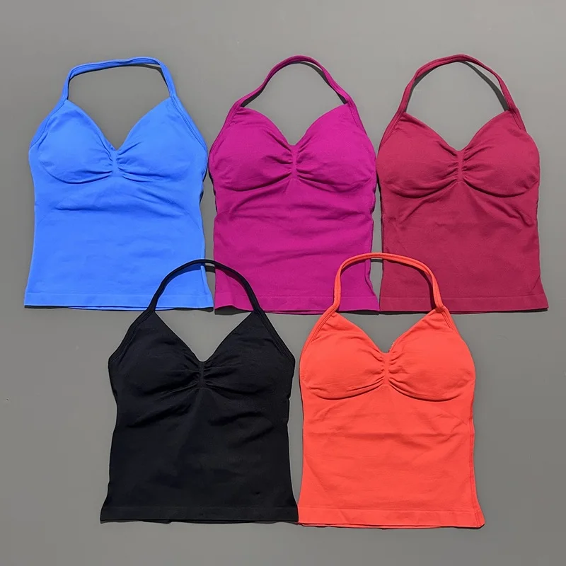 ♡Быстрый просмотрУдарный спортивный бюстгальтер, женский бесшовный бюстгальтер с лямкой на шее, сексуальный топ для йоги с открытой спиной, бюстгальтеры со средней поддержкой, укороченный топ для спортзала, спортивная одежда с подкладкой2124.66 RUBГорячее★★★★★★4.9