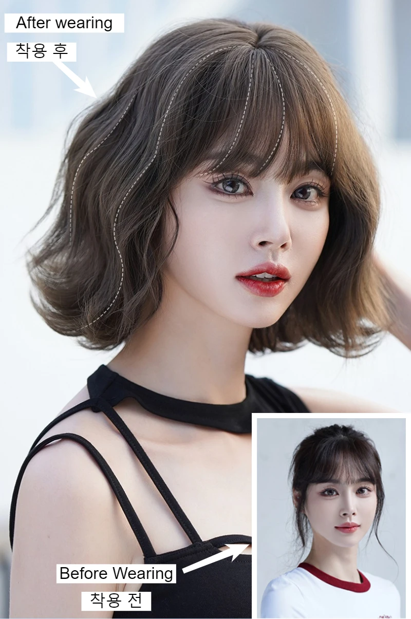 Главная > Пряди для наращивания и парики > Волосы для Азии Женский короткий парик с челкой, пушистые натуральные вьющиеся волнистые парики боб для женщин, парики до плеч, естественный вид, парик из синтетических волос RUB 1668.65