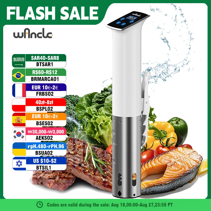 ♡Быстрый просмотрWancle 1100 Вт вакуумная плита Sous Vide IPX7 водонепроницаемый погружной циркулятор мультиварка со светодиодным цифровым точным управлением3814.90 RUBГорячее★★★★★5.0