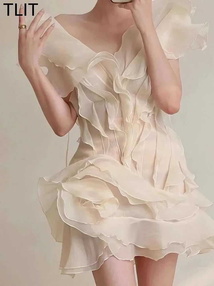 ♡Быстрый просмотрTLIT Элегантное женское платье с воланами, нерегулярное марлевое мини-платье с разрезом на шее, однотонные вечерние платья, новинка весны 202, SK14233603.04 RUBГорячее★★★★★★4.6