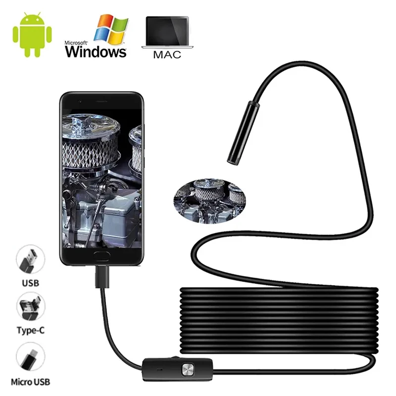 ♡Быстрый просмотр7 мм HD эндоскопическая камера, водонепроницаемая, Micro, 6 светодиодов, IP67, эндоскоп для автомобилей, промышленный смартфон, мини-камера, эндоскоп, USB Type C337.01 RUBГорячее★★★★★4.4